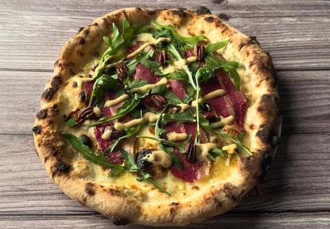 Ideal para os dias mais frios, a Pastrami combina sabores intensos e ingredientes selecionados: queijo scamorza, brie, parmesão, pastrami defumado, nozes pecãs, rúcula selvagem e mostarda artesanal. A mistura foi eleita pela equipe da Officina Local como a estrela das sazonais deste ano.