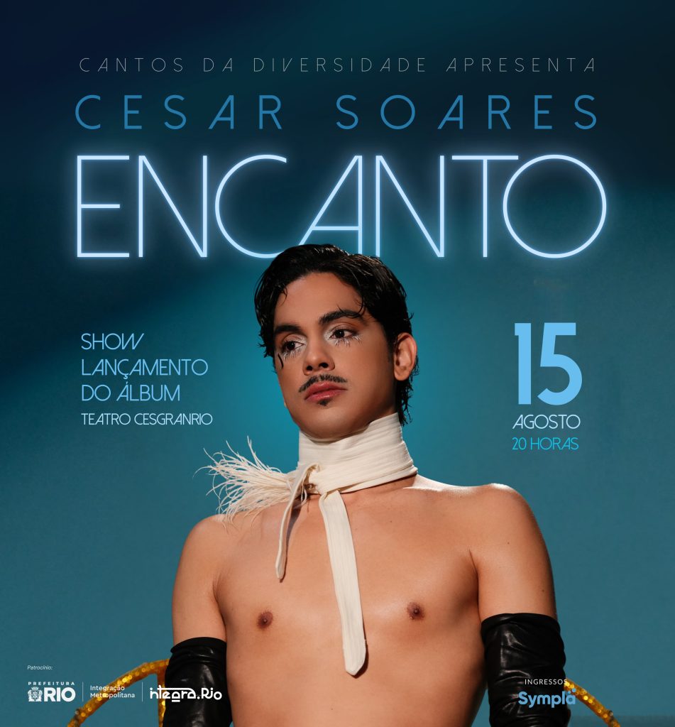 O cantor, compositor e ex-The Voice Brasil (TV Globo) Cesar Soares retorna aos palcos do Rio de Janeiro com o espetáculo Encanto, no dia 15 de agosto (sexta-feira), às 20h, no Teatro Cesgranrio, no Rio Comprido.