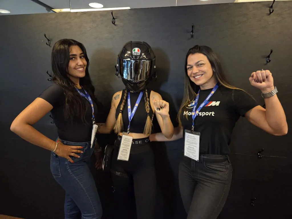 Na foto acima as influenciadoras digitais Graziela Pacheco @grasi_motovlog (E), Black Ninja @blackninja e Amanda Capella @Dinhacapella