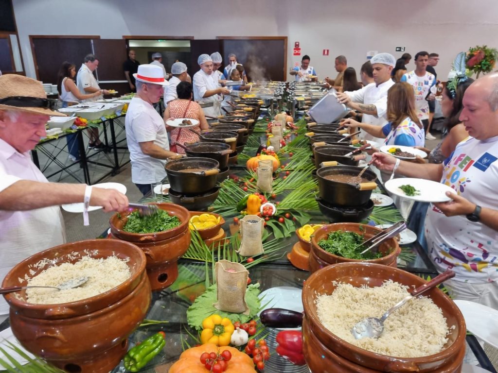 Durante todo o evento, foi oferecido um buffet completo de feijoada com nove tipos de carnes, servidas separadamente, além de uma grande variedade de saladas, pratos quentes e deliciosas sobremesas, tudo preparado pelos experientes chefs da Rede.